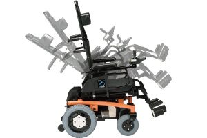 ティルト角度は床に対して4°~50°まで無段階に調整が可能です。ウェイトシフト機構を採用し安全面にも配慮しています。また電動ティルト機構に、手動リクライニング装置をオプション追加することができます。その場合、リクライニング角度は座シートに対して90°~130°までの調整が可能です。